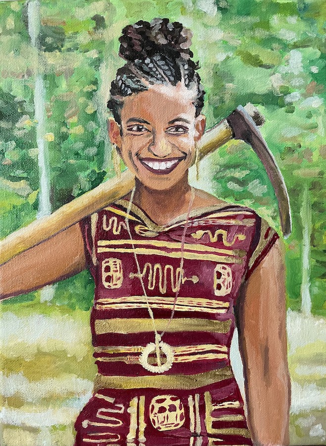 I believe that healing the climate is connected with healing ourselves, which includes listening to those small seeds of yearning we have, to share ourselves and live out loud from our passions. I always loved astrophysics and art, and the climate crisis asks me to bring both the scientific and artistic parts of myself forward to be more whole. I’ve spent much of the last decade as an academic, an astronomy educator, hardly painting at all. This “Climate Women” series is a gift to myself. It has accompanied a larger shift in my life of transitioning from academia to independent consulting, from frantic rushing to being more intentional with my time, and from following rigid perceptions of what a “professional” does to listening more to the messy, creative parts of myself. Painting these women while listening to recordings of them speaking on stage or in interviews has become a meditation practice for me to listen, learn, create, and connect.
