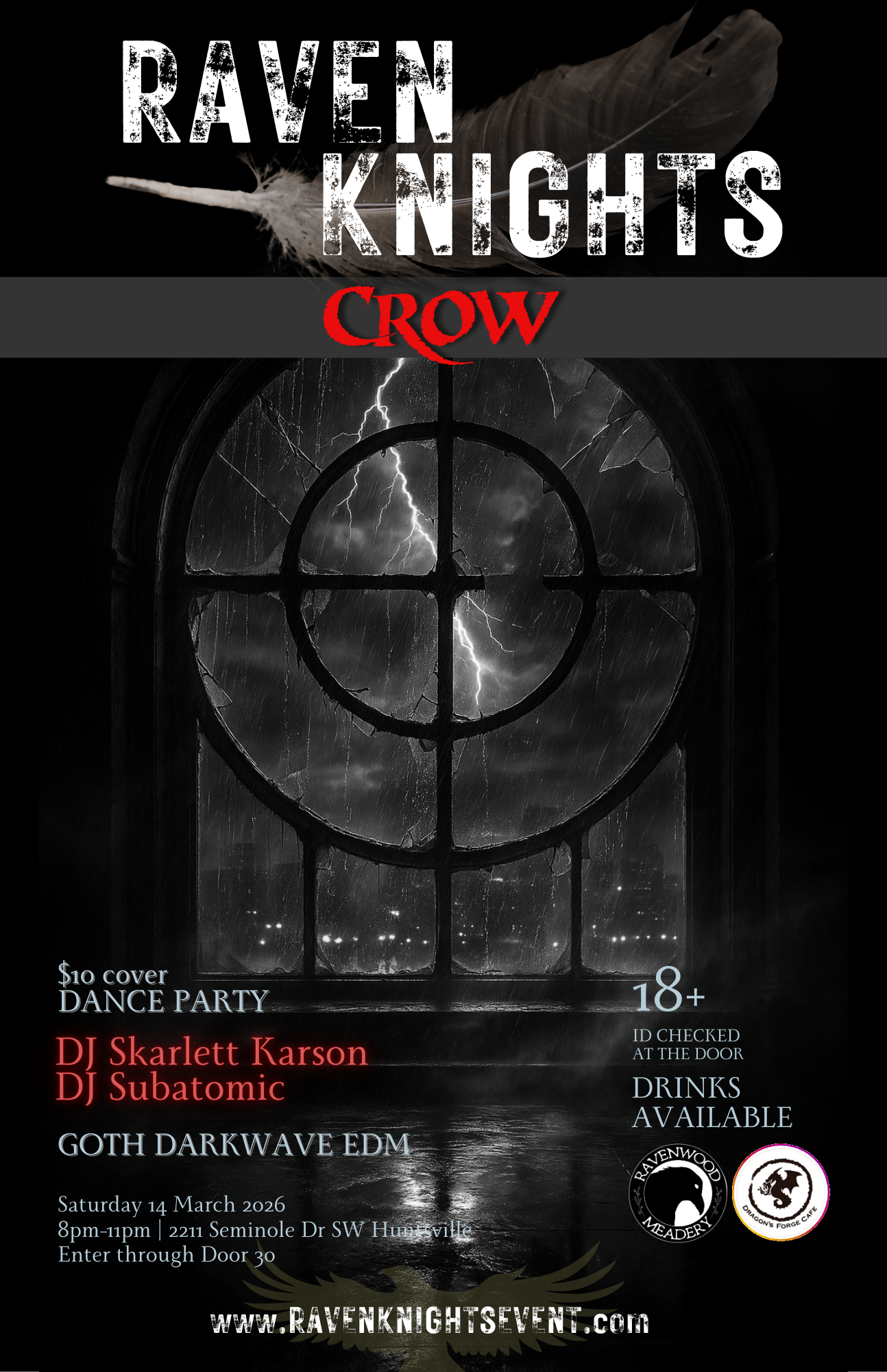 Ravenwood Meadery | Studio 2069 & Dragon's Forge Cafe | Studio 2073RAVEN KNIGHTS returns with Ravenwood Meadery Studio 2069 and Dragon's Forge Cafe Studio 2073—darker, louder, and more intoxicating than ever. This collaborative GOTH | DARKWAVE | EDM dance ritual descends…