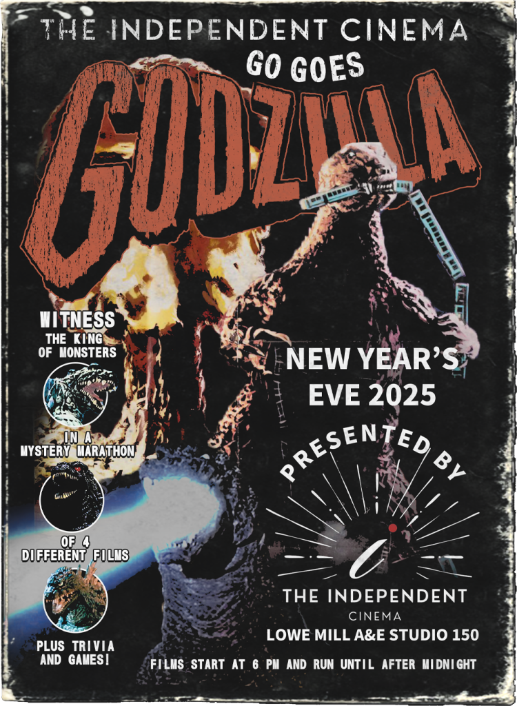 The Independent Studio 150 in colossal Lowe Mill ARTS & Entertainment invites you to the movie marathon event of 2025! Four Godzilla films. One unstoppable New Year’s Eve!Get ready for…