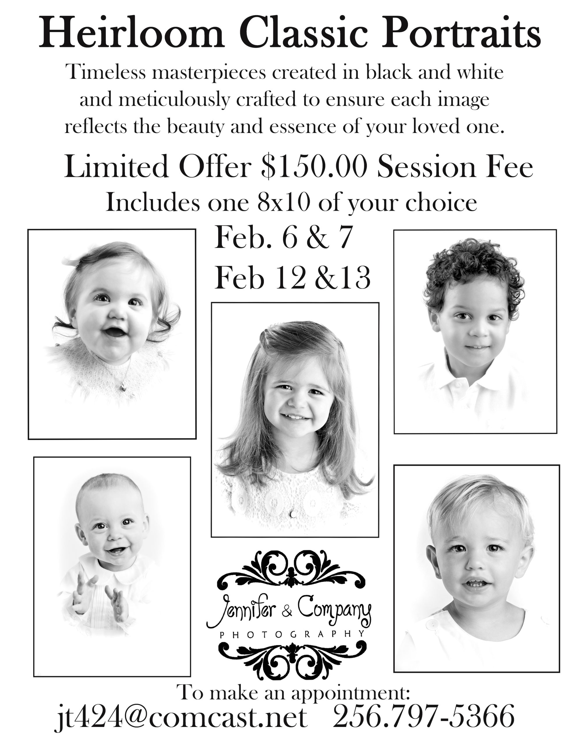 Jennifer Takington | Studio 105Jennifer Tarkington Studio 105 in photogenic Lowe Mill ARTS & Entertainment invites you to a truly unforgettable portrait experience—one that transforms fleeting moments into timeless black-and-white masterpieces. Each portrait is thoughtfully crafted to capture not just how your child looks, but who they are: their spirit, softness, strength, and wonder. With an artistic eye and…