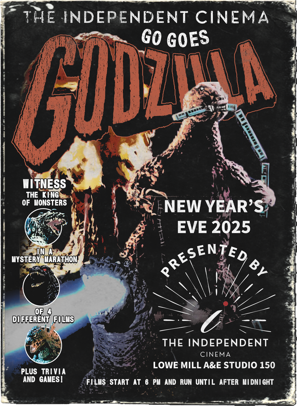 Sandra Kohler | Studio 150 | The IndependentThe Independent Studio 150 in colossal Lowe Mill ARTS & Entertainment invites you to the movie marathon event of 2025! Four Godzilla films. One unstoppable New Year’s Eve!Get ready for the Independent to transform into ground zero for an all-out kaiju celebration. This is your chance to ring in the new year with the King of…